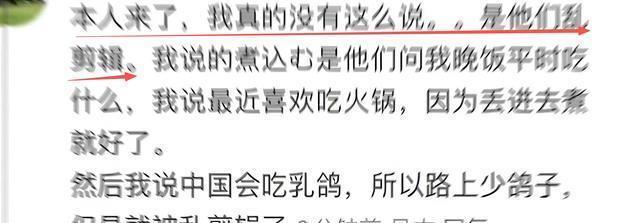 事实上这位女性从未说过“中国人吃乌鸦”这样的话,所谓的“煮了吃”是指她后来说加班时吃火锅,会把食材“全部丢进去煮”,可是节目组通过移花接木的剪辑手法,直接凭空捏造了一个完全虚假的事实!