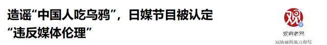 对于这件事情,你有什么想说的吗? 欢迎在评论区进行留言交流! 1.观察者网:造谣“中国人吃乌鸦”,日媒节目被认定“违反媒体伦理”